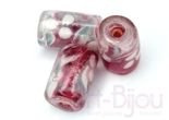 ręcznie robione (lampwork), kolor amarantowo-różowo-kremowo-biały, środek biały, wierzch przezroczysty, mogą różnić się kształtem i rozmiarem