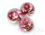 Spłaszczona kulka z kwiatkiem 14 mm lampwork