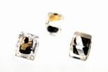 Wyjątkowo oryginalne szklane kostki Murano złotą 24kt i srebrna (czyste srebro 99,9%) folią, czarnym środkiem. Poza środkiem kostki są przezroczyste. Każda sztuka jest odrobinę inna.