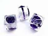 Oryginalne szklane kostki Murano zdobione srebrną (czyste srebro 99,9%) folią z szafirowym przezroczystym środkiem. Poza środkiem kostki są przezroczyste i bezbarwne. Każda sztuka jest odrobinę inna.